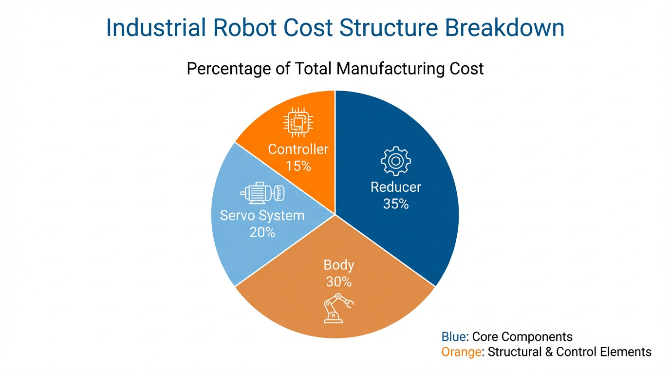 Figure 1: Cost breakdown of industrial robots showing the concentration of value in core components