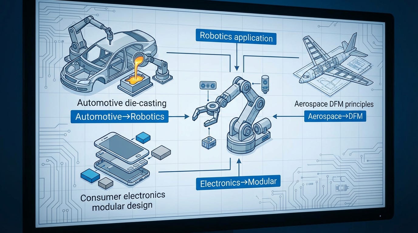 The robotics companies that thrive in the next decade will be those that look beyond their industry for inspiration, systematically transfer innovations from adjacent fields, and build organizational capabilities for continuous paradigm-shifting thinking.
